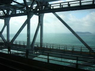 11:15列車は瀬戸大橋を渡る。 天気が若干不安定だったが、それでも多島美の良い風景が望めた。 |