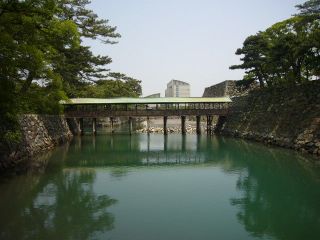 12:51先程訪れた玉藻公園の濠がホームから見える。 |