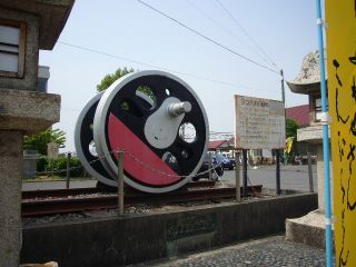 14:06JRの琴平駅付近には、シゴハチ(C58)の動輪が展示されてあった。 |