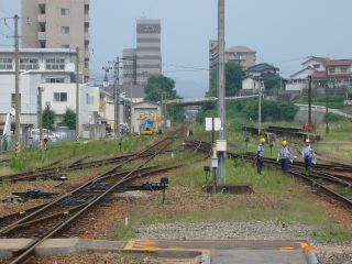 13:53塩町方面を望む。 周りは比較的建物が建っているものの、ダイヤ的にはローカル。 |