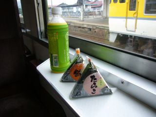14:56扉も開き、いよいよこれが急行みよし最後の乗車となる。 ここで、遅めのお昼を食べる事に。 |