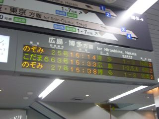 15:0715:33発の広島行き(狙ってた)に乗る。もちろん自由席。 のぞみではなくこだまを選んだ理由は、あのゆったり2&2シートに座りたいから。 何といっても自由席で2&2というのが嬉しい。 |
