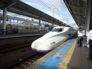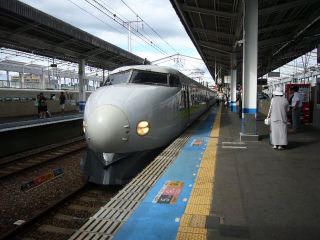 15:12待っている時に丁度のぞみが来たので「練習で撮ってみるか」と思ってカメラを準備したら…新型車両N700系が! そういえばN700系が15:50に広島を発車するダイヤがあったなぁ。 |