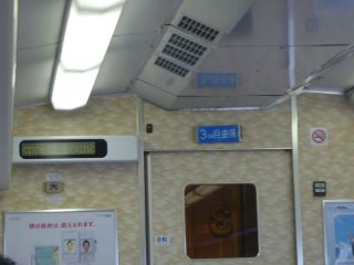 15:33車内に入った。 電光掲示板の位置も違い、壁紙は少し昭和の雰囲気。 |