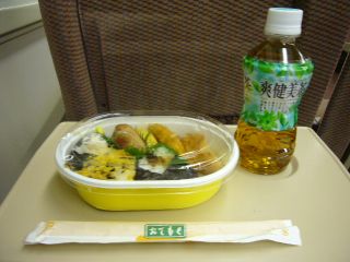 15:38さて、待ちに待ったお昼。 今回は岡山名物の駅弁…といきたかったが、財布が苦しいのでコンビニ弁当で済ませる。 |