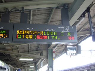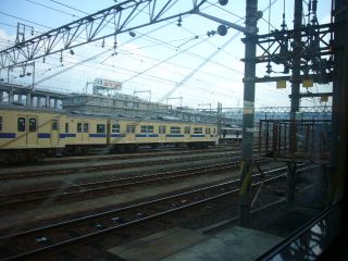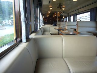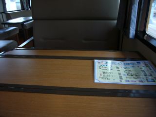 他の人が車掌に頼んでロングシートからボックスシートに変更していたので、私も車掌に頼んでロングからボックスに変えてもらった。 やはり進行方向の座席は快適。 |