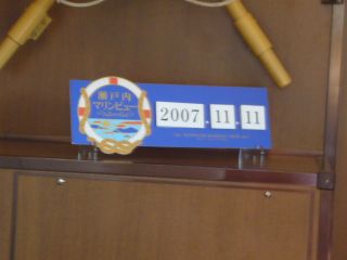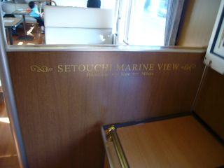 座席とフリースペースの間切りとなる板には「~SETOUCHI MARINE VIEW~」の文字が。 |