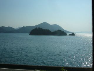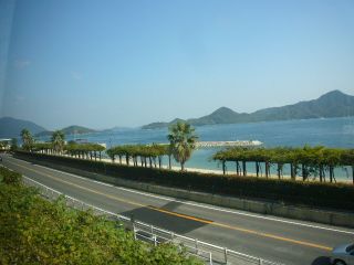 それではご覧下さい。忠海~安芸幸崎間の絶景を。 この区間では、速度を遅くするというサービスもしてくれる見受けられた。 |