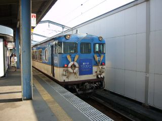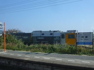 三原駅の手前の駅、須波に到着。 何も無ければこの駅はスルーするけど、ホームの向こうに見たことない車両があったので撮影。 |