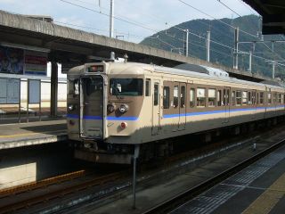 山陽本線のホームには113系カフェオレが。 一応撮っておいた。 |