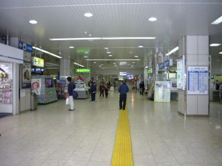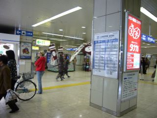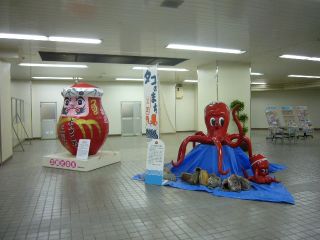 新幹線構内に入りました。 やけにがらんとしたスペースには、またタコが。 どうやら送迎専用のタコのようです。 それと、何故か隣にはだるまがどんと。 |