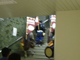 武士たちは駅の奥の階段を上っていく。 何とシュールな光景なんだ(笑) |
