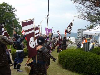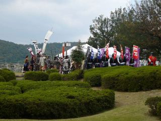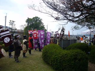 さて、三原に到着…って何だこの武士たちは! さっきからホラ貝を吹いているような音がしたけど、これか…。 |