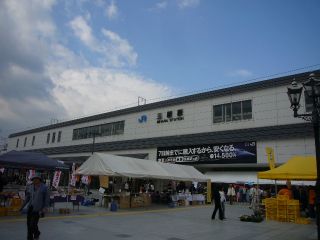 駅弁も買ったところで、改めて三原に到着。 …と思ったら、また何かテントが設けられていた。 先程の武士といい、テントといい、今日の三原、何かが変? |