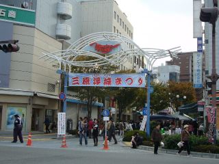 案の定。 今日は「三原浮城まつり」という祭りの日だそう。 おかげで、前回行ったときは静かだった「マリンロード」も賑わいを見せている。 |