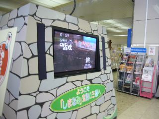 新岩国に到着。 そしてエスカレーターで降りたら、いきなりどーんとこの看板が(笑) 私の目的もこれです。 |