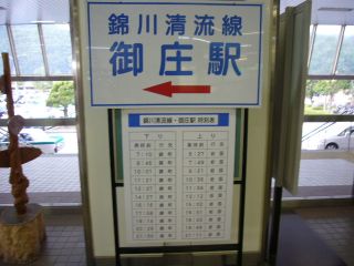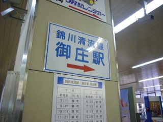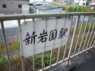 手書きオーラ全開「新岩国駅」の案内板です。 |