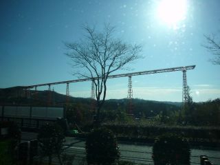 10:33一般道に入って約2分。 写真のような壮大な建造物が見えてきました。 察するに、着陸する飛行機を誘導するものでしょうか。 |