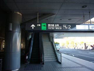 バスを降り、エスカレーターに乗ってロビーへ向かいます。 |