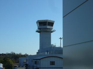 ロビーの端から管制塔が見えたので写しておきました。 |