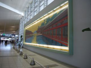 広島空港には、こちらのドでかい絵があります。 広島に来ていきなり宮島ですよ。 |