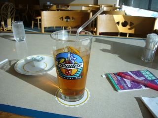 13:40レストランに入店し、アイスティーと共に窓から見える飛行機をしばらく眺めることに。 |