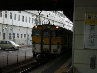 JR西日本のローカル版エース、キハ120形です。 この列車で約2時間かけて府中へ向かいます。 |