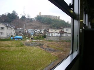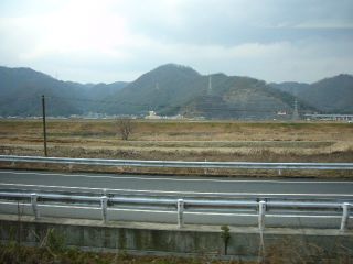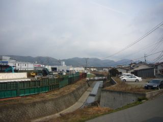 13:56福山市の車窓。芦田川に沿って走行します。 |