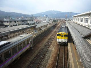 11:21約7ヶ月振りの三次駅です。 これから、左下に停まっている府中行きに乗車します。 |