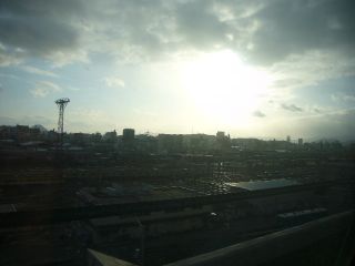 16:45もの哀しく夕陽が沈みます。 町並みは見事に逆光。 |