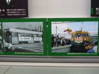 15:21資料コーナーで気になる箇所があったので撮影。 呉市電廃止と、呉線全線電化開通記念の写真がありました。 |