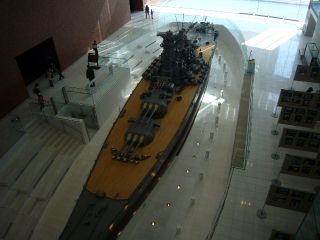 15:34上の階から見た大和模型です。 間近で見るのとはまた違ってきます。 |