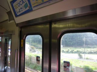 9:09広島から本郷までは、子供を中心とした団体が大勢乗り込んできました。 そのため止むを得ず立つハメに。 |