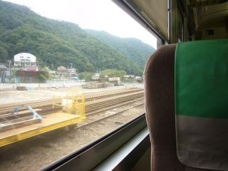 12:09今回は、三度目の乗車にしてやっと"パノラマグリーン右側席"に着席できました! 前回の乗車(香川・ことでん旅行)のように、運転席によって視界を遮られるということはありません。 |