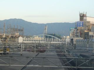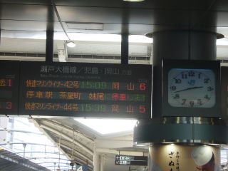 16:01新幹線の高架が見えてきました。 1時間足らずで岡山に到着。高松と岡山の近さを実感します。 |