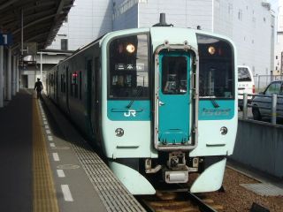14:44恒例の撮影タイム。 まずは1500系。新型の気動車で、バリアフリーがウリです。 |