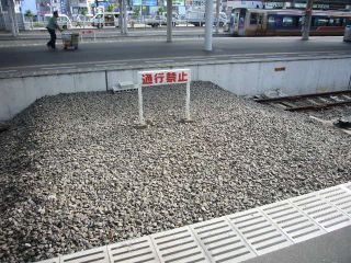 14:55高松駅構内といったらどうもこれが妙に印象深いです。 山のような砂利。 数年前に起きた宿毛駅での列車衝突にならった対策でしょうか。 |