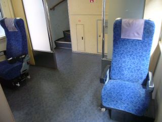 14:57身障者用の座席を撮っておきます。 1×1…どう見ても不自然なこの広さ。 座席は指定席仕様です。 |