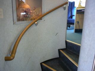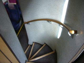 14:57今回乗るグリーン席への階段。 指定席へのそれと違って床がカーペットになっており、壁にはささやかな振舞いが。 |