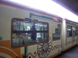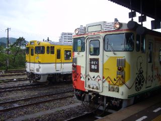 10:33今回のメイン「みすゞ潮彩」に乗車します。 明らかに存在が浮いてます。 |