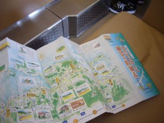 10:42瀬戸内マリンビューでいうマリンメイトならぬ、みすゞ潮彩の「みすゞメイト」が添乗しています。 そのみすゞメイトからもらったパンフレットは「風景の時刻表」というもの。 ビュースポットなどが詳しく記載されていました。 |