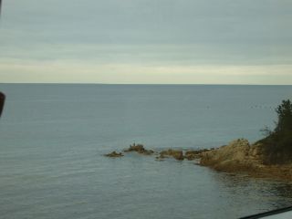 11:22しばらくしてビュースポットに差し掛かりました。 もちろんみすゞメイトからの案内はありますが、瀬戸内マリンビューの場合は「減速」するのに対し、このみすゞ潮彩では 「停車」 してくれるんです! 約4分ほど、日本海の水平線をじっくり眺めることができます。 |