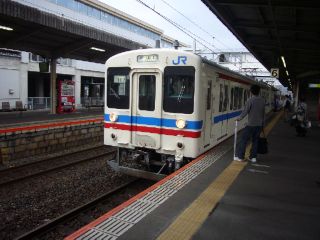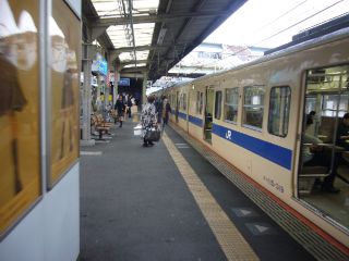 14:35厚狭からは山陽本線。 「117系よ来い!」と期待していたのですが、来たのはまさかの105系! 山陽本線の105系…果たしてどんなものなのか。 |