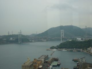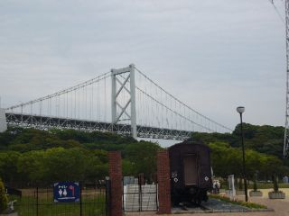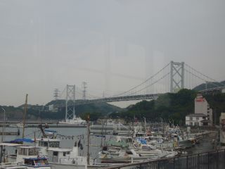 11:19列車からは関門橋が見えました! それにしてもこの列車、線路の状態が悪いからか結構揺れます。 |