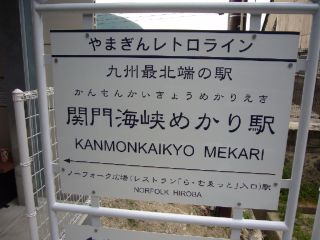 11:27あっという間に、終点の関門海峡めかり駅に到着しました。 駅名標には、「九州最北端の駅」と書かれてました。 |
