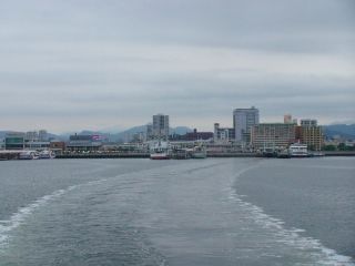 動画を見ていたりボッタクリホットドックを食べているうちに、松山観光港が見えてきました。 |