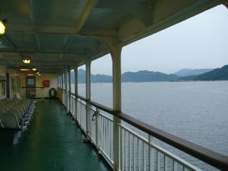 デッキの風景です。 どことなく旅情感がありますね。 潮風も気持ち良いです。 |