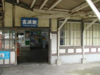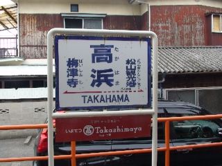 5分程度で高浜駅に到着。 手書きの雰囲気漂う駅名板は味があります。 |