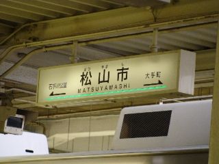 松山市駅に到着。 走行音だけでなく、発車メロディーもしっかり録りました。 |