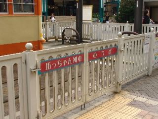 坊っちゃん列車ののりばは、誤乗車を防ぐために通常ののりばと離れた位置にあります。 |